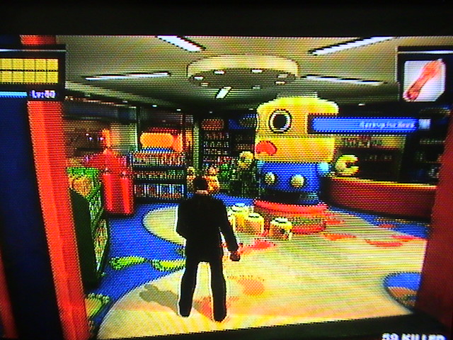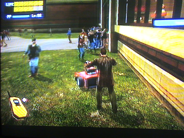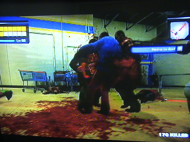 このゲームにもボスはちゃんとおり、おそらくこのような状況になって気が狂ったんですねぇ・・・かなりサイコな連中です。右の写真は食品売り場の店長?で、武装したショッピングカートで襲ってきます。そのほかに、狂ったピエロ、爆弾魔、スナイパー親子、脱獄した3バカトリオ、Sなデブ婦警、ガンショップの店長、カルト教教祖、肉屋、ベトナム帰還兵、カメラマンなどなど非常にクレイジーな方々ばかりですww