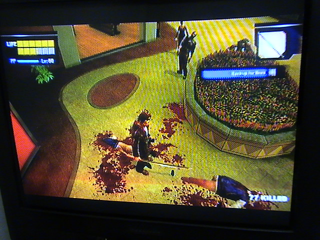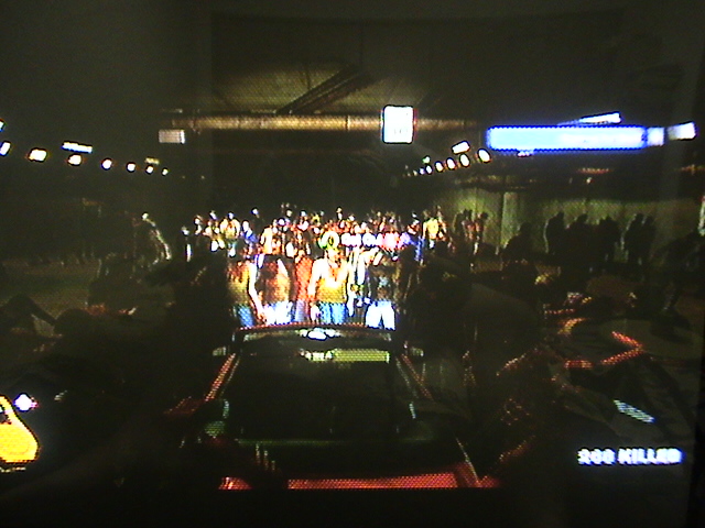 ゾンビに囲まれてるときはつらいです^^;チェーンを回せばあとは振り回すだけ。あっとゆう間に辺りは血の海に。