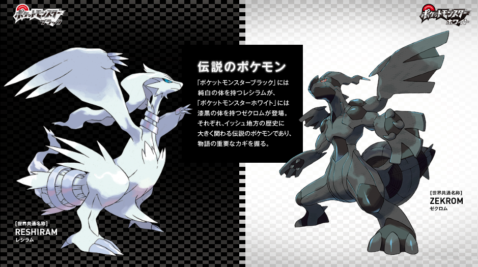 ブラックは白い竜のレシラム、ホワイトが黒い竜のゼクロムとゆうそうです。