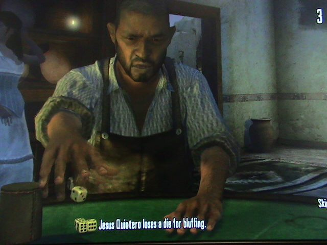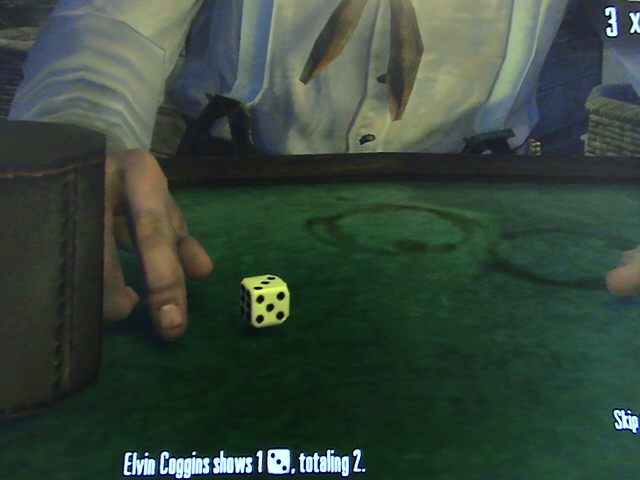 こちらには3つ目が1個、おっさんの手札に3つ目が無ければジョンがサイコロ1個捨て=実績解除できないとゆうことに・・・><
