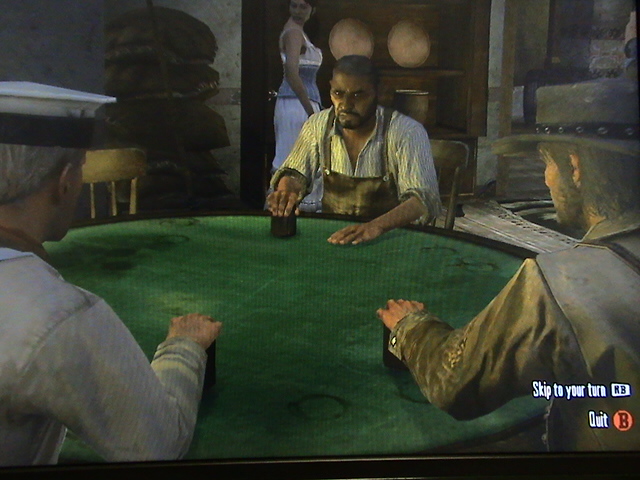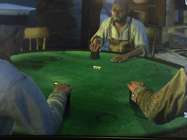 奥のおっさん、5個捨てでドボン。左おっさん2個捨て。ジョン0!!