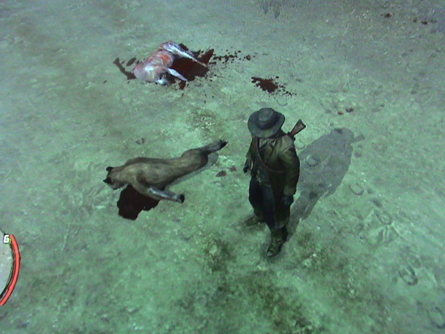 凄腕ガンマン・ジョンはあっとゆう間にクーガー2匹を血祭りにして皮を剥いでやりました。
