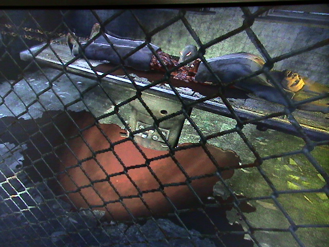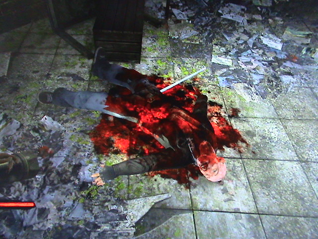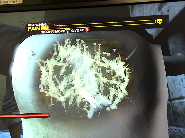 画像←は注射器が無数に入った便器に手を突っ込んで、鍵を探すシーン。