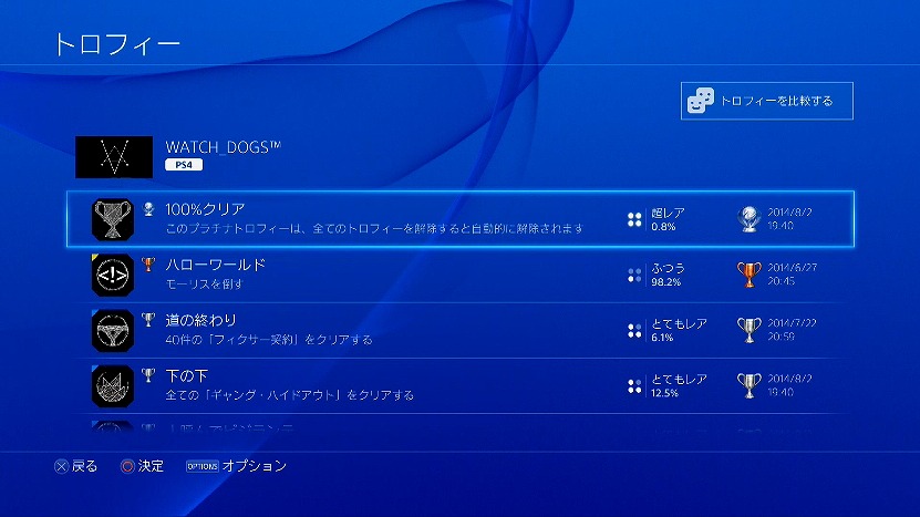 仕事の合間にチマチマ遊んできたウォッチドッグスですが、ようやくプラチナトロフィー、ゲットしました♪これでPS4タイトル2本目のプラチナとなりました^^b