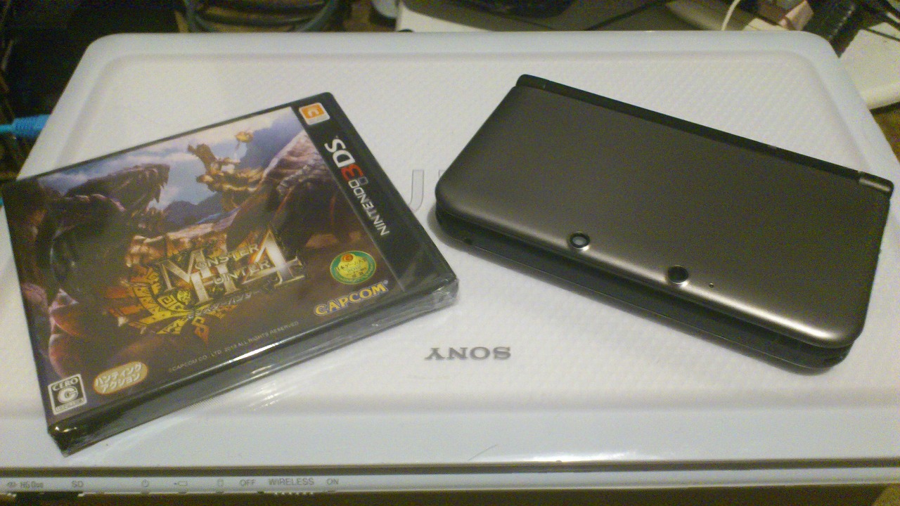 発売前日に職場で仲の良い先輩がどうやらパチンコで大勝ちしたそうで、「本体を買うならモンハン買ってやる!ただしまだ予約受付してる店があればなw」と申したので、仕事帰りに2人でビ○クカメラに行ったら普通に予約受付中だったってのが今回の経緯ww
