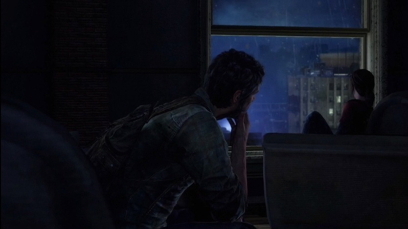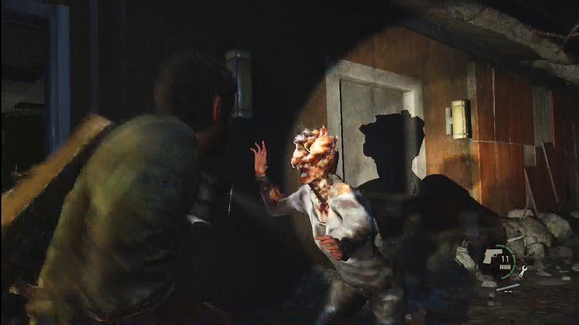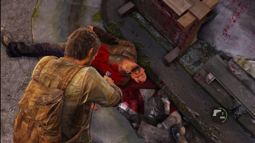 基本的には一本道な様子。ですが、クラフトのための物資を集めなきゃどうしようもなく弱いジョエルさんなんで、棚を開けたり、床を物色したりする必要がありますね。