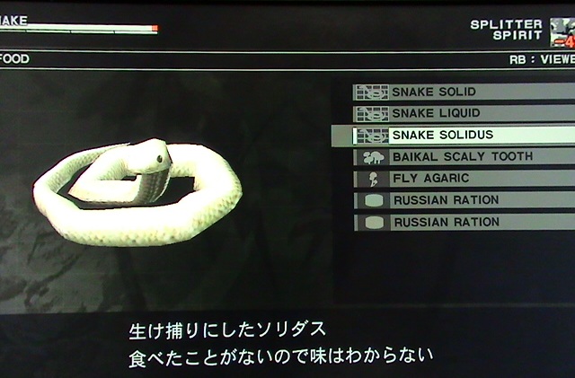 あとはザ・ボス戦でしか捕獲できないソリッド、リキッド、ソリダスの三種ヘビ。